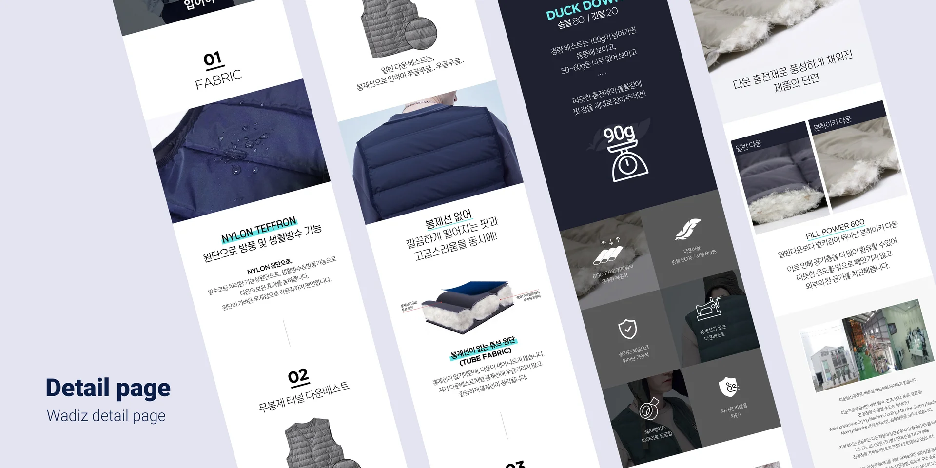 이번 프로젝트는 겨울철 필수 아이템인 라이트다운 베스트의 상세페이지 디자인 작업이었습니다.