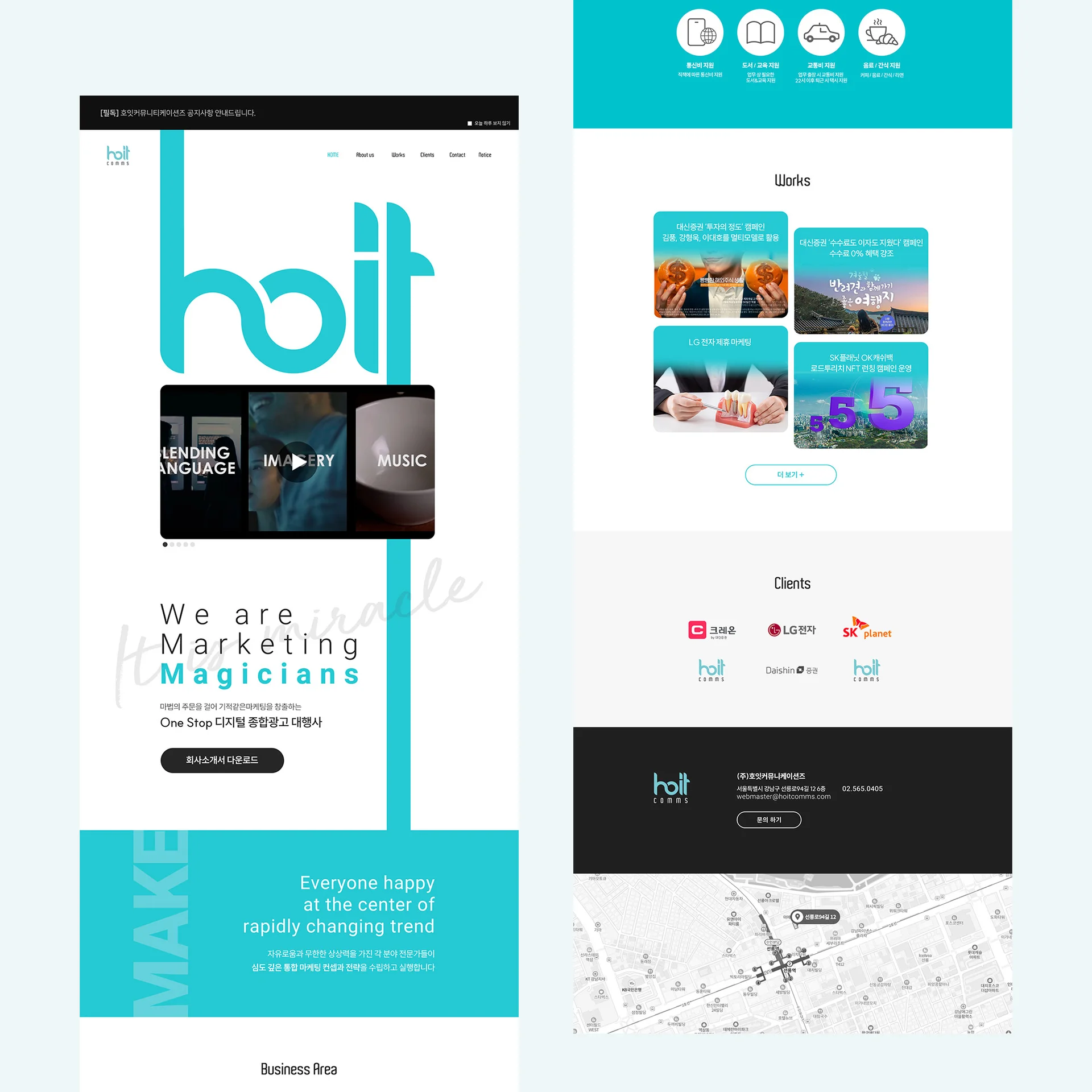 모던하면서도 전문적인 이미지를 통해 광고 에이전시로서의 전문성과 창의성을 동시에 표현하고자 했습니다.