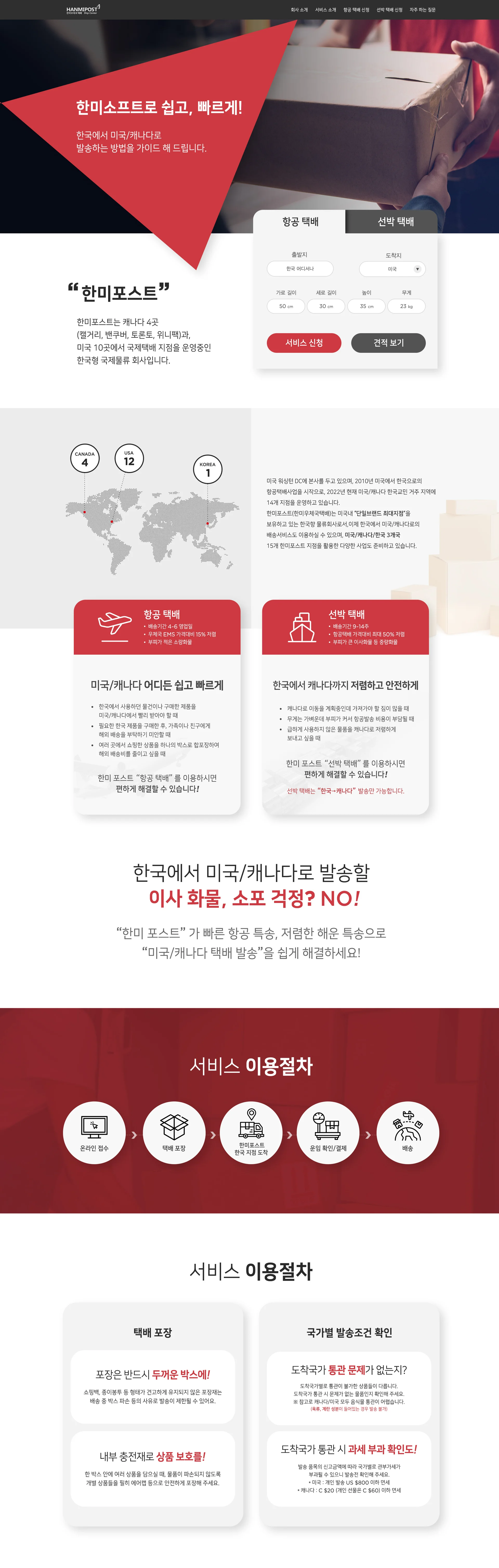 해외 우편 배송 서비스 홈페이지 메인 페이지 디자인 시안을 들고왔어요!